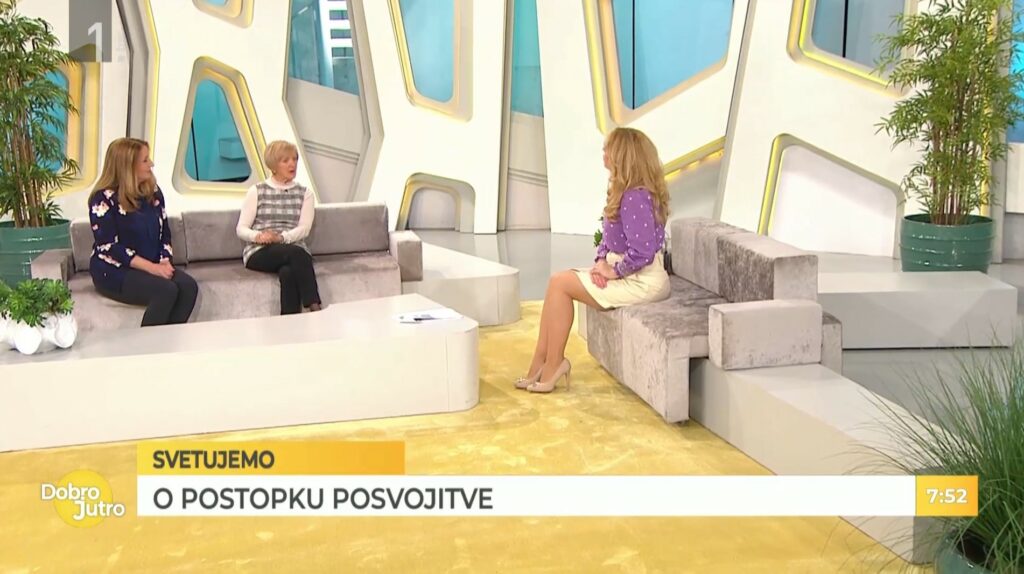 Danes sta bili dr. Viktorija Bevc, strokovna vodja Programa priprave na posvojitev pri Društvu Deteljica ter Erna Flogie Dolinar, podpredsednica našega društva gostji v oddaji Dobro jutro na TV Slovenija 1. Z voditeljico oddaje Ano Tavčar sta v nasvetih pred osmo uro spregovorili o tem, kako stopiti na pot posvojitve, kako in na kakšen način otroku povedati, da je posvojen in zakaj je pomembna priprava na posvojitev.