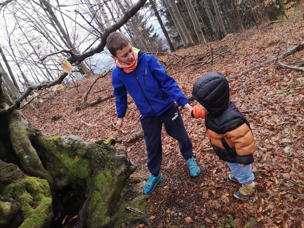Prav s posebnim namenom smo jo ubrali tja. Preverili smo, če že kaj diši po pomladi, iskali smo zvončke, trobentice, teloh in čemaž. Hja, pa seveda gozdne škrate, ki se dričajo po drevesih in skrivajo po gozdu. Zanje so se nadvse zanimali naši najmlajši udeleženci.
