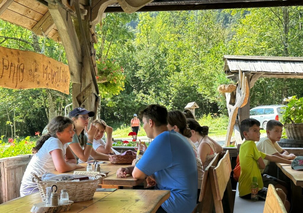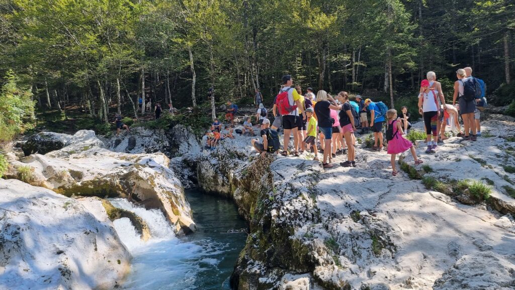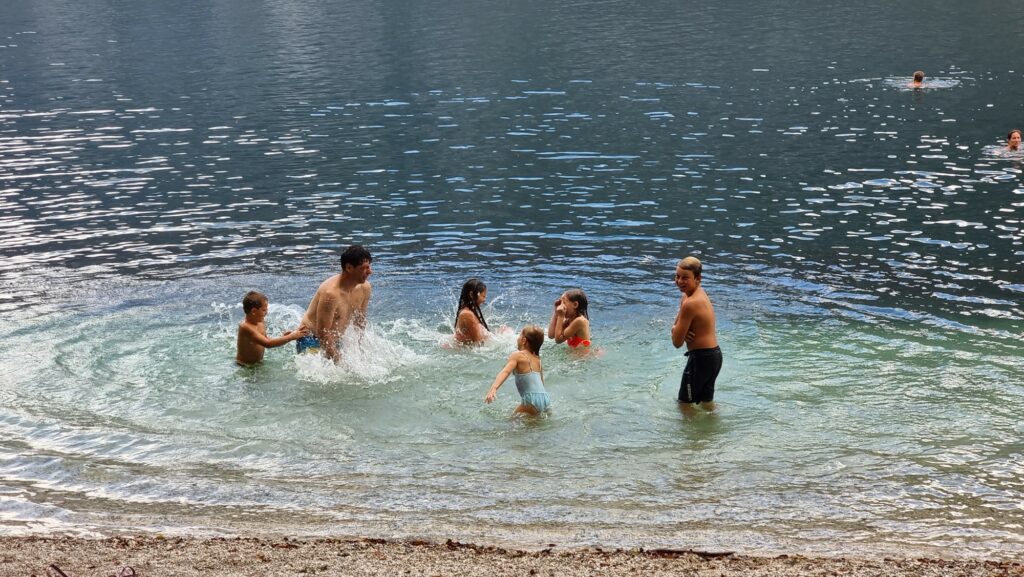 Na taboru smo se prvi in drugi dan družili na pohodih, in sicer smo obiskali razgledišče Peč v Bohinju, korita Mostnice in dolino Voje, kjer smo lahko občudovali kristalno čudovito vodo ter uživali v lepih razgledih in naravi. Seveda ni manjkalo možnosti za skok v vodo in ohladitev v jezeru. Tretji dan, ki je bil namenjen igram brez meja, pa je bil še posebej moker. Res je bilo lepo videti iskrice v očeh naših najmlajših, ko je v otroški razigranosti voda škropila vsenaokrog.